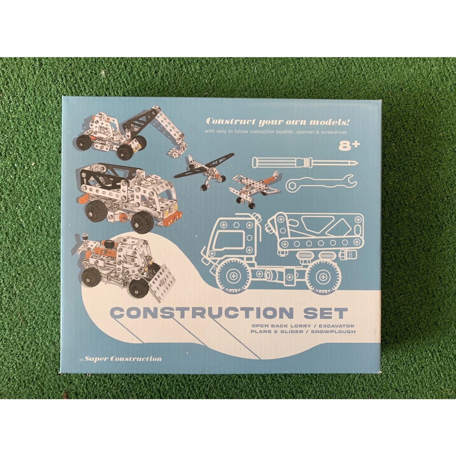 Kit contains instructions all the pieces needed to make the vehicles as well as the spanner and screwdriver.
