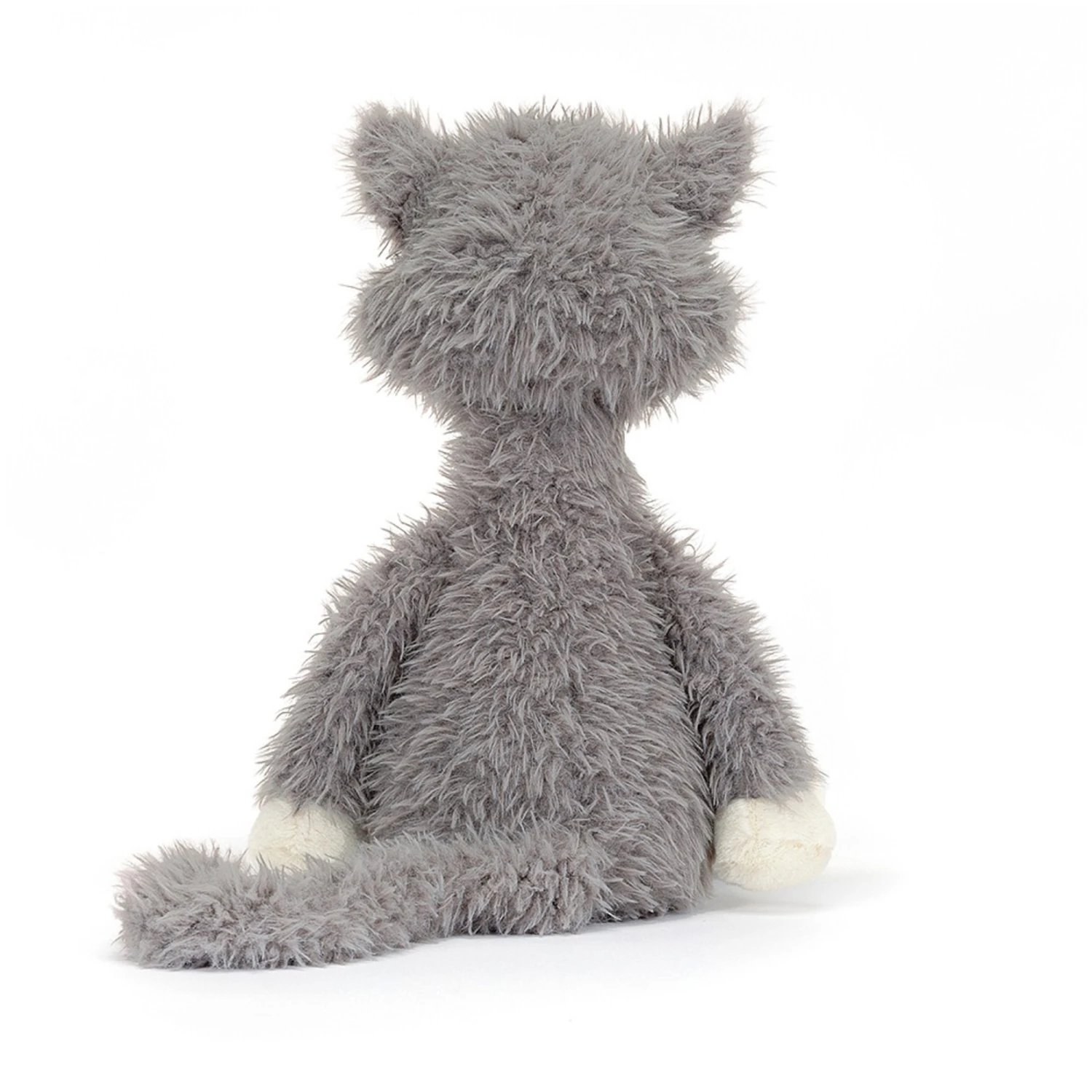 Blowzy Belle Cat has super fluffy grey pebble fur, lovely blue ears and long limbs with soft paws and a long long twisted tail.